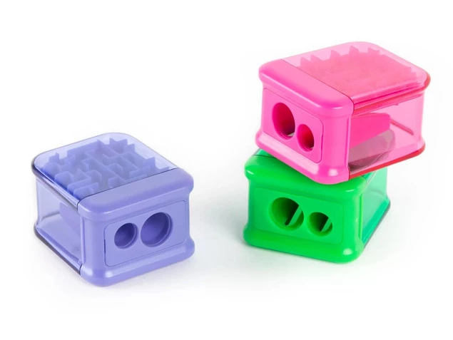 Wyposażona w dwa otwory o różnych średnicach, temperówka umożliwia precyzyjne ostrzenie zarówno klasycznych cienkich ołówków i kredek, jak i grubszych kredek typu jumbo. To doskonały wybór dla uczniów w różnym wieku, którzy korzystają z różnych przyborów plastycznych i piśmienniczych.