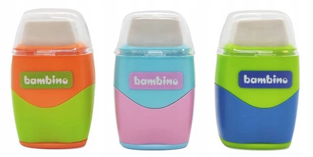 Opinie o Temperówka Szkolna Podwójna Z Gumką i Pojemnikiem Manualna Bambino