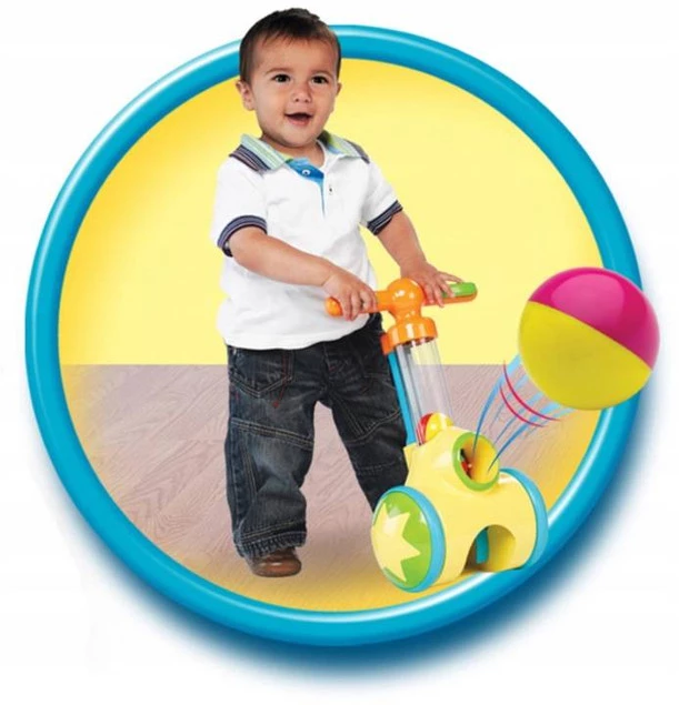TOMMIES Piłeczkowy jeździk zachwyci malca, a zabawa nim sprawi mu ogromną frajdę. Kolorowe elementy i ciekawe funkcje rozbudza w dziecku ciekawość i zachęcą do stawiania pierwszych kroków. Starszym brzdącom ułatwi przecieranie nowych, nieznanych szlaków zarówno w domu jak i podczas zabawy na dworze czy podczas spaceru. Zgrabny, kolorowy Piłeczkowy jeździk, to taki mini odkurzacz i wyrzutnia piłeczek w jednym. Po wciśnięciu znajdujących się na pomarańczowej rączce przycisków strzela piłeczkami, a gdy dziecko najedzie zbieraczem na kolorową kuleczkę zostaje ona wciągnięta do środka zabawki.