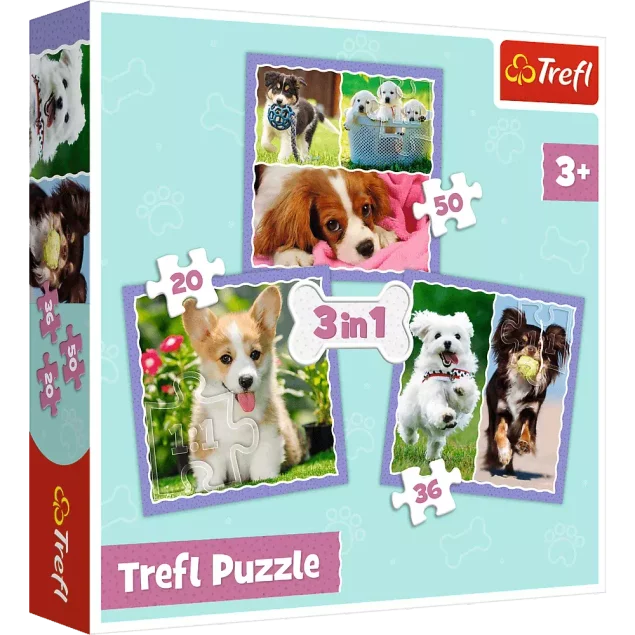 Trefl Puzzle 3w1 Urocze pieski Zwierzęta 34854