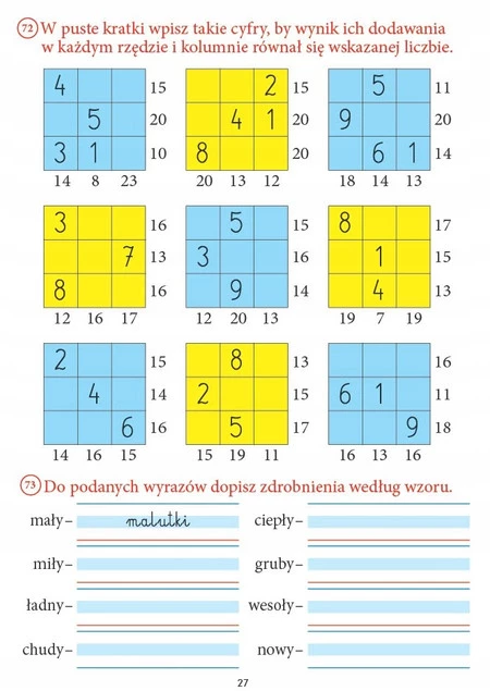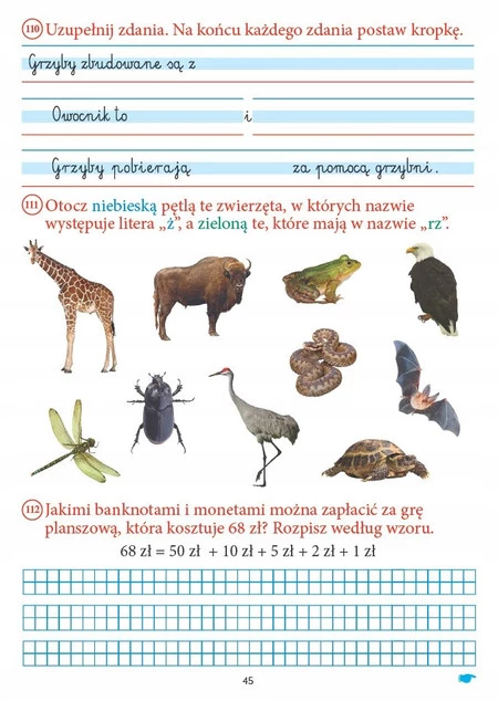 Ćwiczenia, zadania i uzupełnianki rozwijają spostrzegawczość i koncentrację.