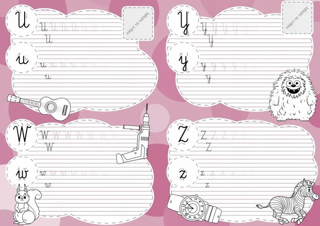Pisz po śladzie i samodzielnie. Każdą literkę opatrzono wskazówkami, które pomogą sprawnie poprowadzić rączkę. Pisanie po śladzie ułatwi samodzielne odwzorowanie kształtów liter.