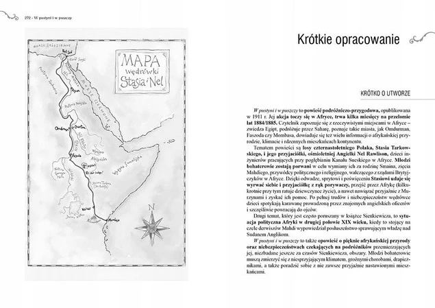 Wydanie W pustyni i w puszczy kompletne bez skrótów i cięć w treści. W tym wydaniu znajdziesz odpowiedzi na pytania z podręcznika - "pewniak na teście", czyli wskazanie zagadnień, które zwykle pojawiają się w pytaniach z danej lektury we wszelkich testach sprawdzających wiedzę, a także w podręcznikach i na klasówkach. Książka zawiera pełen tekst lektury. Na końcu książki zamieszczono opracowanie, w którym znajduje się bardzo szczegółowe streszczenie oraz drugie skrócone, ułatwiające szybkie przygotowanie się przed lekcją. Opracowanie zawiera ponadto plan wydarzeń, wnikliwie wyjaśnioną problematykę oraz szerokie charakterystyki bohaterów.