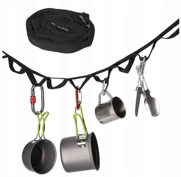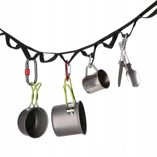 NC1771 marki NILS CAMP to lina organizer, która jest praktycznym rozwiązaniem dla każdego miłośnika outdoorowych przygód. NC1771 posiada aż 19 oczek, do których możemy przymocować mokre ubrania, naczynia, czy inne akcesoria, których nie chcemy trzymać na ziemi. Dodatkowo Lina posiada regulowane zapięcie z dwóch stron, dzięki któremu można w bardzo prosty i szybki sposób rozwiesić ją na dowolnych drzewach.