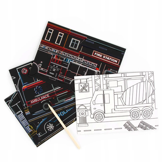 Wydrapywanka z Kolorowanką POJAZDY 6 Arkuszy z Rysikiem Kidea_2Wydrapywanka z Kolorowanką POJAZDY 6 Arkuszy z Rysikiem Kidea_3Wydrapywanka z Kolorowanką POJAZDY 6 Arkuszy z Rysikiem Kidea_4