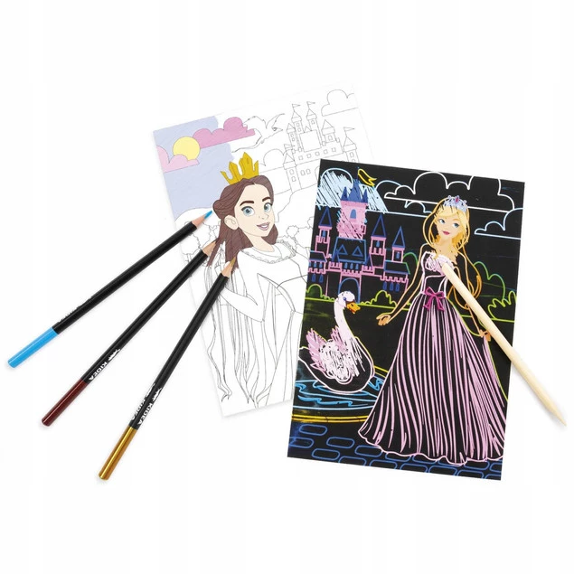Złóż zapytanie o cenę hurtową produktu |Wydrapywanka Zdrapywanka Kolorowanka KSIĘŻNICZKI 6 Arkuszy + Rysik Kidea