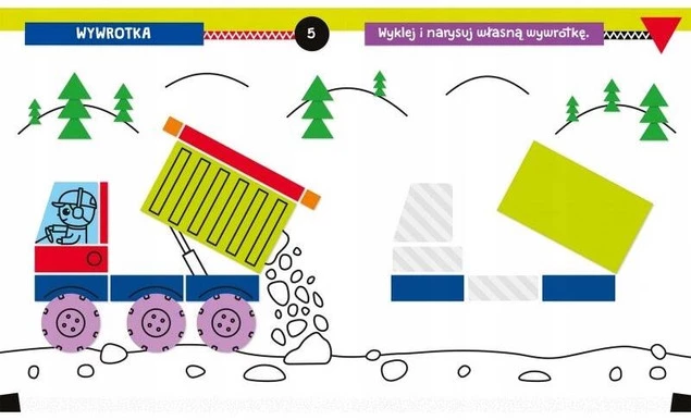 Pojazdy w akcji. Wyklejanka, rysowanka z figurami 4+