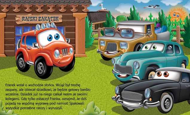 Poczytaj o sympatycznym czerwonym samochodziku Franku i dowiedz się, gdzie wybrał się na wyprawę z dziadkiem.