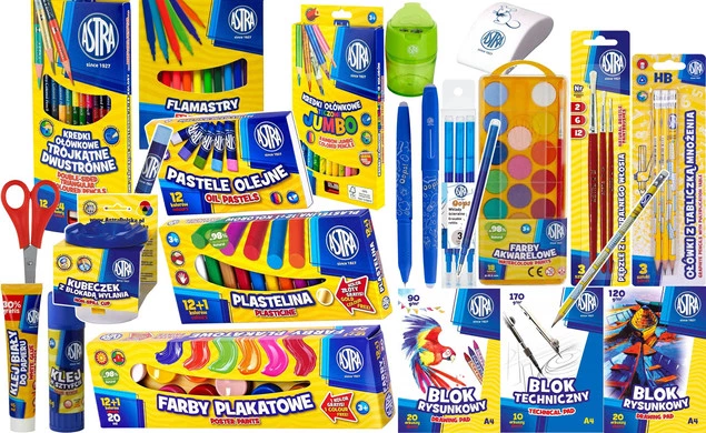 ✨ Bardzo duży, kompletny zestaw podstawowych artykułów plastycznych opierający się na produktach Astry. ✨