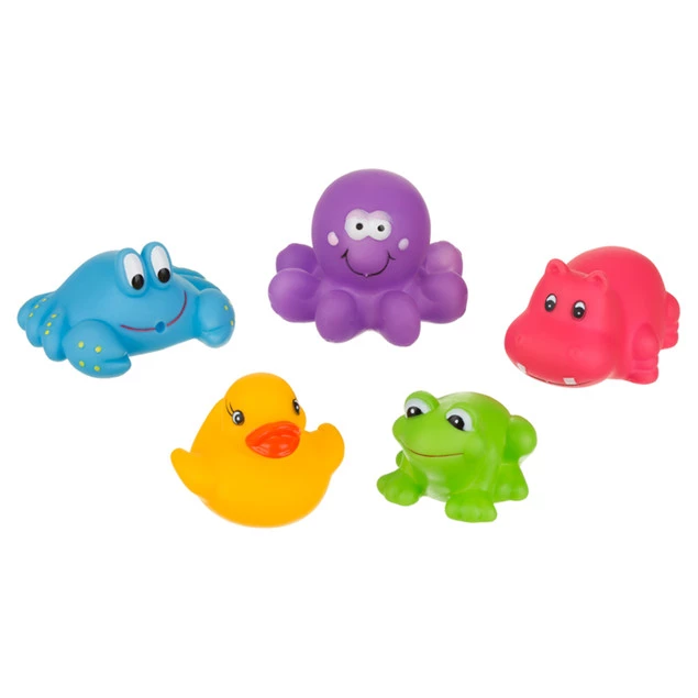 Zestaw 5 ślicznych, kolorowych zabawek do kąpieli.