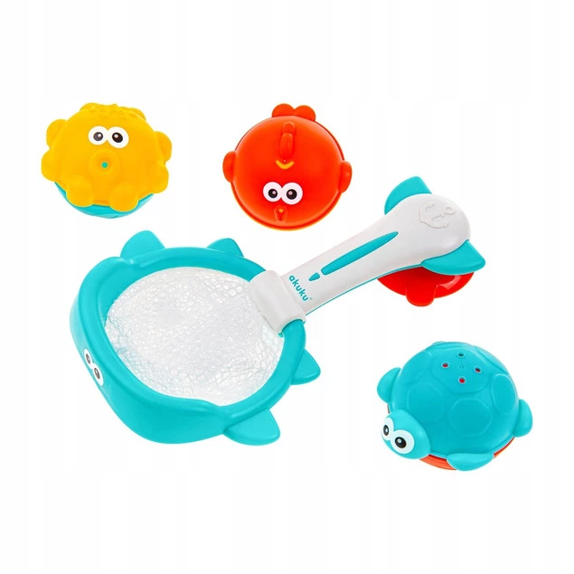 Zabawki Kąpielowe Do Kąpieli Z Sitkiem Koszem 3szt. 12M+ Akuku A0456_1