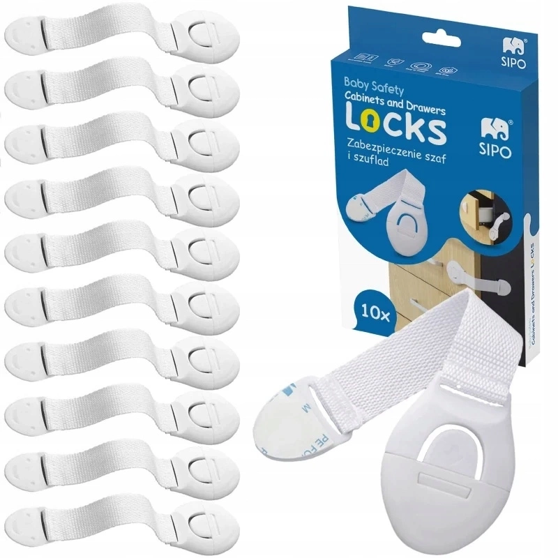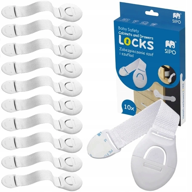 SIPO zestaw 10 sztuk zabezpieczeń szaf i szuflad na zatrzask to idealne rozwiązanie dla rodziców z małymi dziećmi, którzy chcą zadbać o ich bezpieczeństwo w domu. Zabezpieczenia te są proste w użyciu i skutecznie chronią przed przypadkowym otwarciem mebli przez dzieci. Zabezpieczenia do szafek i szuflad to praktyczne urządzenie, które zapewnia bezpieczeństwo Twojemu dziecku, uniemożliwiając mu dostęp do niebezpiecznych przedmiotów lub substancji przechowywanych w szafkach i szufladach. Blokada jest naklejana na powierzchnię mebla za pomocą dostarczonej taśmy klejącej. Aby otworzyć szafkę lub szufladę, należy odpowiednio nacisnąć element odblokowujący znajdujący się na zabezpieczaniu. Dzięki temu blokada jest trudna do odblokowania przez dziecko, a jednocześnie łatwa w użyciu dla dorosłych. Łatwe w montażu blokady posiadają dołączoną taśmę 3M dzięki której w łatwy sposób zamocujesz swoje blokady tam gdzie tylko jest to wymagane. Zabezpieczenia można łatwo otworzyć i zamknąć jedną ręką, co ułatwia ich użytkowanie.