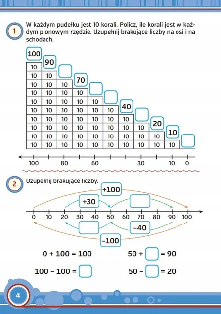 - doskonalenie umiejętności wykonywania czterech działań arytmetycznych w zakresie 100,