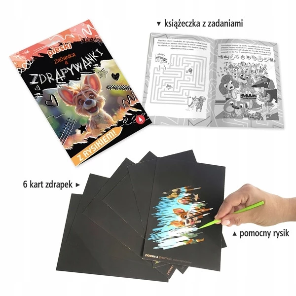 ZADANKA & ZDRAPYWANKI to połączenie rozrywki z ćwiczeniami wspierającymi rozwój dziecka. Każdy zestaw z serii to: