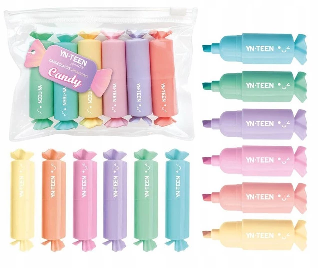 Złóż zapytanie o cenę hurtową produktu |Zakreślacze Cukierkowe PASTELOWE Candy Nowoczesne 6 Kolorów Interdruk