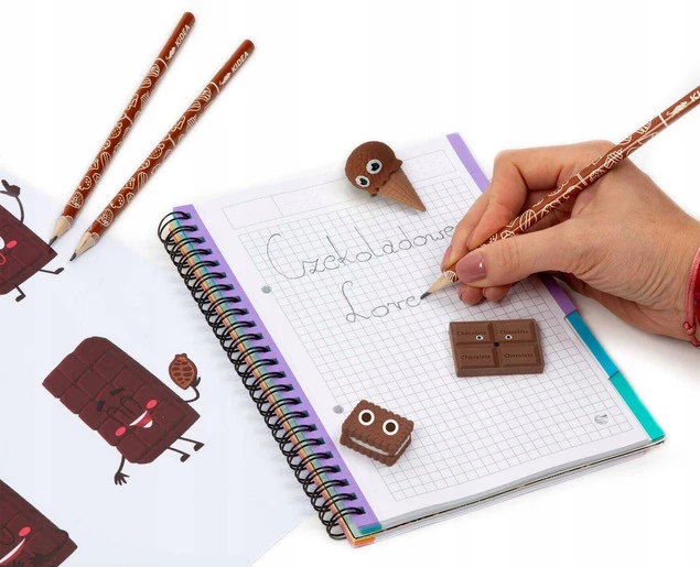 Sprawdzi się zarówno na lekcji matematyki jak i plastyki, a jego czekoladowy zapach umili dzień spędzony w szkolnej ławce.