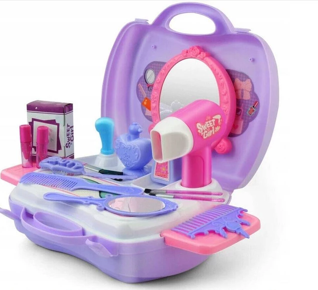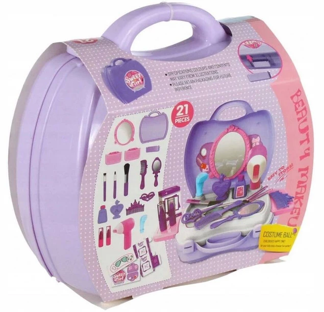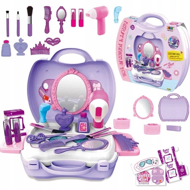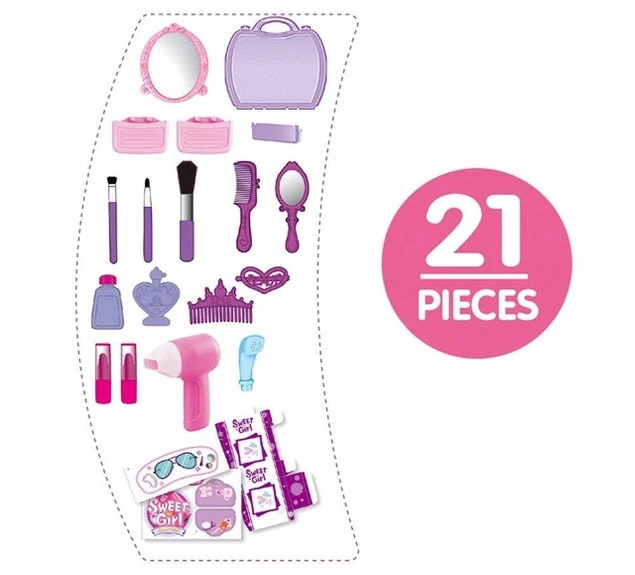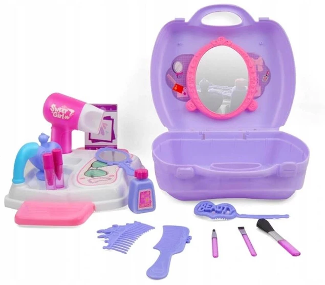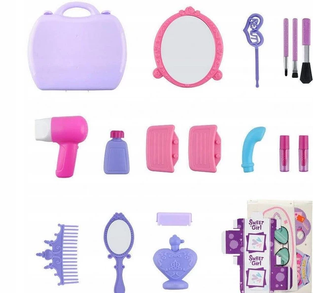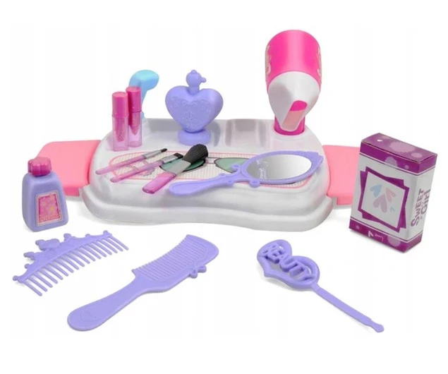 Bardzo ładnie wykonany zestaw będzie dumnie prezentował się na domowej toaletce, dzięki niemu mały stylista fryzur wykreuje fryzurę lali, misiowi, a może nawet mamie i babci!