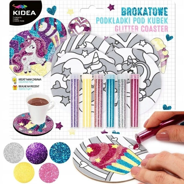 Zestaw Kreatywny BROKATOWE PODKADKI DIY Bajkowy Świat 3+ Kidea