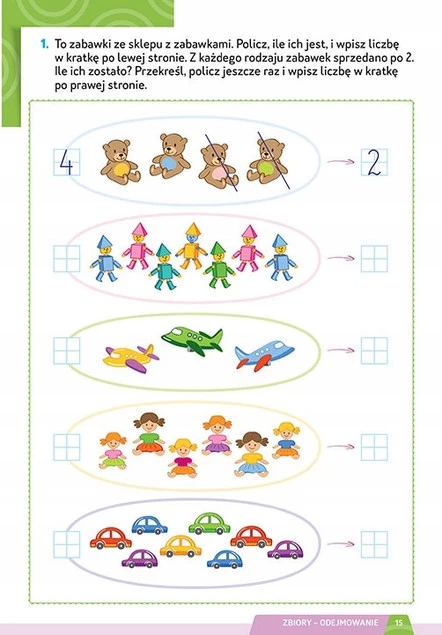 Książeczka Dodawanie i odejmowanie wprowadza dziecko w podstawy najważniejszych działań matematycznych - dodawania i odejmowania. Zaprezentowane są one w intuicyjny sposób - od działań na zbiorach, przez działania do 10, do 20 (bez przekroczenia progu dziesiątkowego) i dziesiątkami do 100.