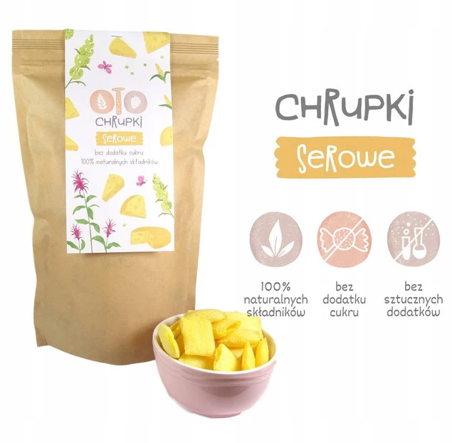 Chrupiące poduszeczki to świetna alternatywa dla popularnych wśród dzieci przesłodzonych przekąsek. OTO Chrupki serowe są złożone w 100% z naturalnych składników, bez dodatku cukru i sztucznych substancji, przez co polecane są jako zdrowe przekąski dla całej rodziny.