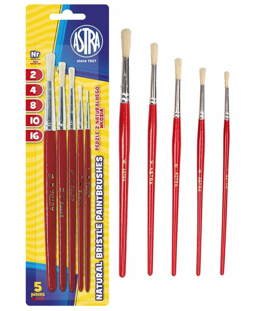 Zestaw Pędzli Do Malowania Szkolnych 5 sztuk ASTRA