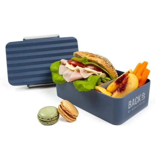 Śniadaniówka w eleganckim, granatowym kolorze to zdecydowanie strzał w dziesiątkę! Falowany design na pokrywce śniadaniówki nadaje stylowy wygląd, a wyciągana przegródka ułatwia przechowywanie i separowanie żywności. Popielate zatrzaski dopełniają całość.