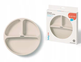 BABYONO Silikonowy Talerzyk z Przyssawką BEŻOWY Dla Dzieci 1482/04