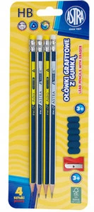 Ołówki Grafitowe HB Z Gumką Temperówką Nakładką 4 szt. Astra