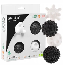 Piłeczki SENSORYCZNE Kontrastowe Czarno Białe Piłki 0M+ Akuku A0469