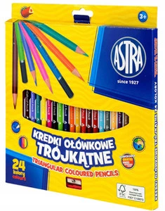 Kredki Trójkątne Ołówkowe Szkolne Dla Dzieci 24 kol. + Temperówka 3+ Astra