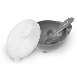 MISECZKA Z ŁYŻECZKĄ I POKRYWKĄ Miska Talerzyk 250ml SZARA Akuku A0425