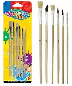 Pędzelki Szkolne Drewniane 6 Sztuk: 12/10/8/6/4/2 3+ Colorino 89415