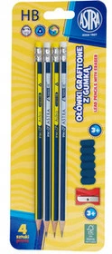 Ołówki Grafitowe HB Z Gumką Temperówką Nakładką 4 szt. Astra